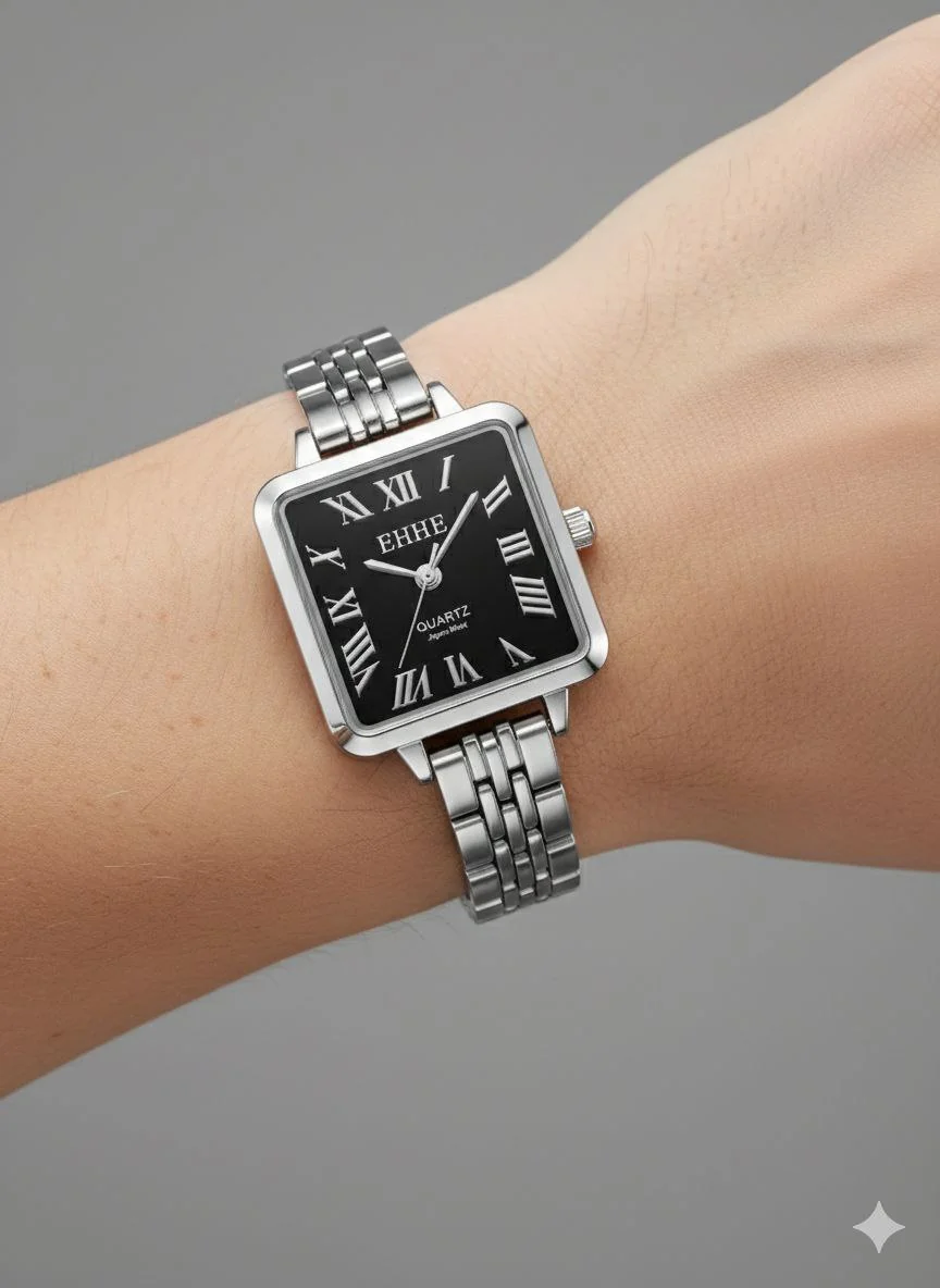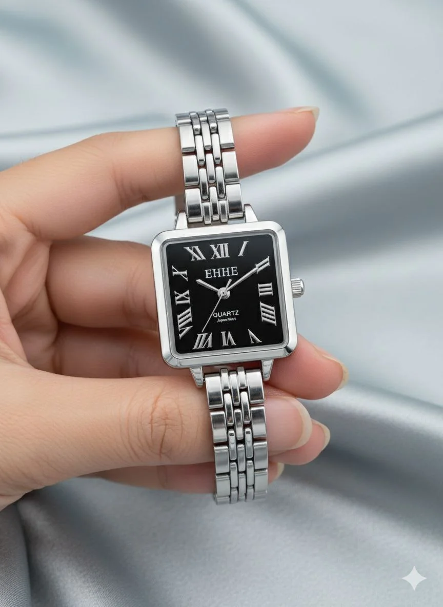 ساعت زنانه صفحه مشکی استیل مدل EHHE کد2758