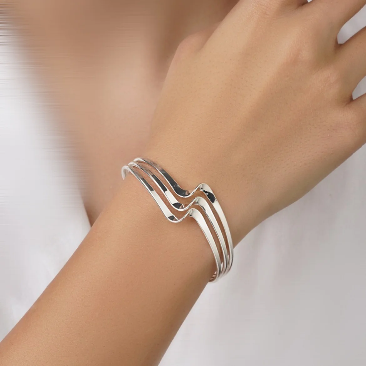 بنگل لاکچری آرت لاین انتخابی شیک برای استایل های لوکس است. این بنگل با آبکاری نقره با کیفیت تولید شده است. طراحی آن ترکیبی از خطوط مینیمال و جزئیات هنری است. وزن سبک و ظاهر جذاب آن پوشیدن روزانه را آسان می کند. شماره مدل 34982 نشانگر توجه به جزئیات تولید است.