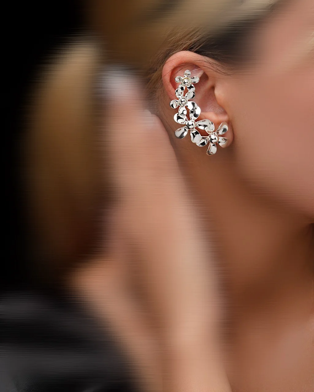 ایرکاف لاکچری فلوریا گوشوارهای مدرن و چشمگیر است. طراحی آن بدون نیاز به سوراخ اضافه انجام شده است. میخ نقرهای با کیفیت، راحتی و ثبات را تضمین میکند.