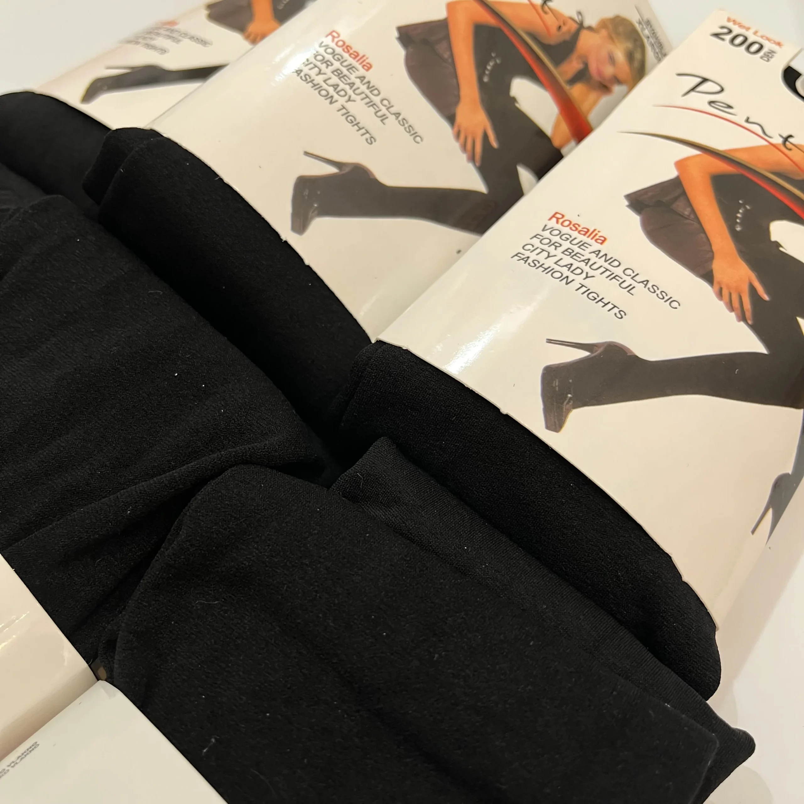 جوراب شلواری PENTI مشکی با کد 2401، مدل گرم200 با بافتی نرم و گرم. مناسب فصل پاییز و زمستان، فیت دقیق و کشسانی مناسب بدن. انتخابی ایده‌آل برای استایل روزمره و رسمی. کیفیت بالا، دوام طولانی و ارسال سریع.